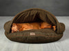 The Green Tweed Cave Luxury Dog Bed by Collard Creatures, is great for snuggling and super pleasing on the eye. True Style & comfort for your pet and your home! The Green Tweed Luxury Cave Bed Is made from only the highest quality handpicked fabrics. The Outer is a Greeny Brown wool mix that creates a hardwearing hood while still looking attractive. The Internal of the Cave Bed is lined with a Luxury teddy Fur Fabric, soft and generously thick.