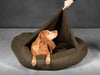 This beautiful Pet Bed is known for it’s a thick tubular bolster pillow that creates a ring of supported comfort. This bed is also made from the highest quality handpicked fabrics. The Outer is a Green Tweed wool mix that creates a hard-wearing hood while still looking attractive. The Internal of the Cocoon Cave Bed is lined with a thick teddy Fur Fabric. Soft to touch but made to last, to ensure the bed is suitable on all home surfaces we have designed the bed to have a durable Oxford fabric that is tough and water resistant.