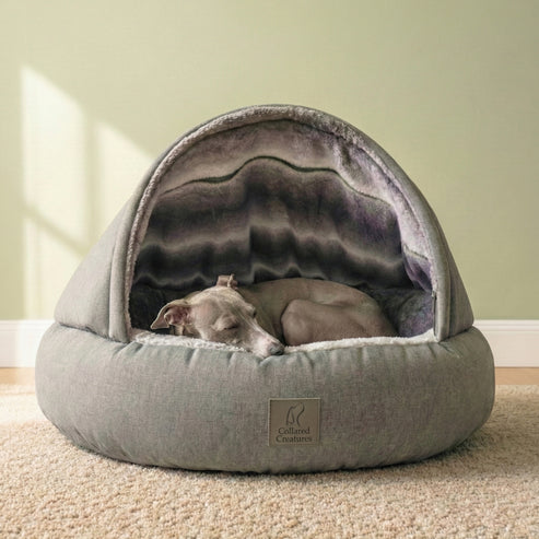 View full detailsCollared Creatures - Luxury Grey Hoodied Bolster Dog Bed - Removable Hood