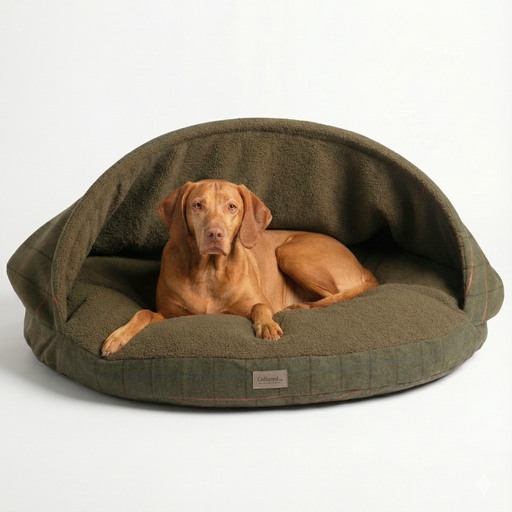 Collared Creatures - Green Tweed Cave Luxury Dog Bed